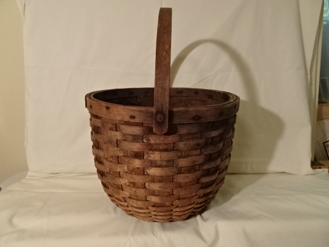 #138 Antique Handmade Basket - swivel handle - 14" round x 11 1/2" h, plus 7 1/4" handle - $55? (RETH)