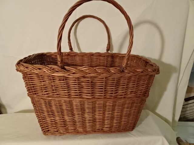 #139 Antique Handmade Basket - stripe decoration - 15 1/2" w x 9 1/2" w x 9 1/4 h, plus double handles - $ ? ()