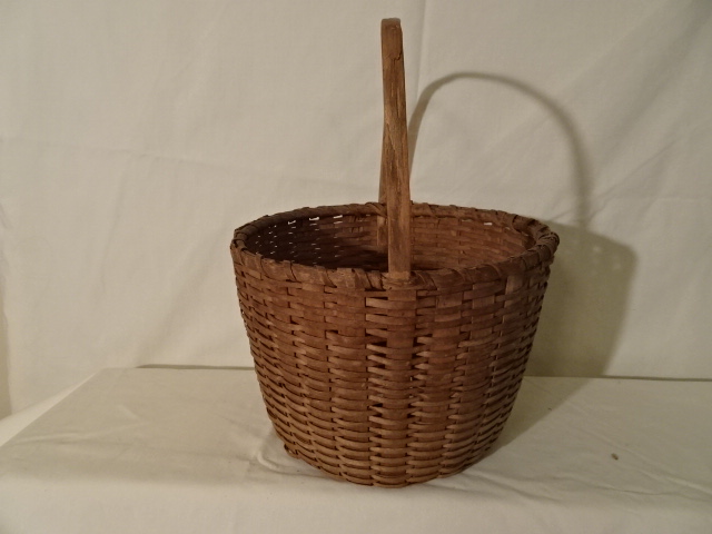 #147 Intricate Antique handmade Basket - 9" round x 6 1/2 h plus 7" handle