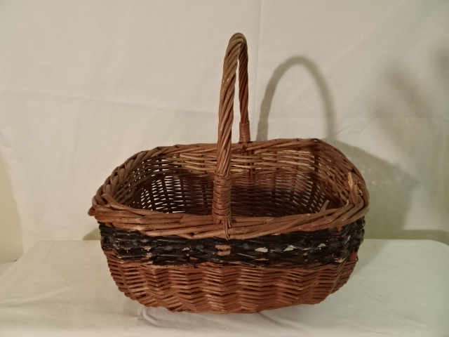 #155 Antique Handmade Basket - painted stripe - 11" x 9" x 6" with 5 1/2" handle