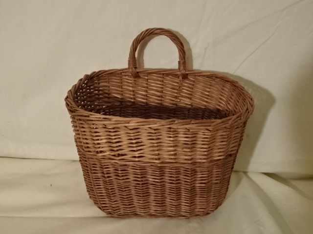 #156 Single Side Handle - Antique Handmade Basket - Decorative Stripe - 9 1/2 oval x 7 h plus 2 1/2" handle